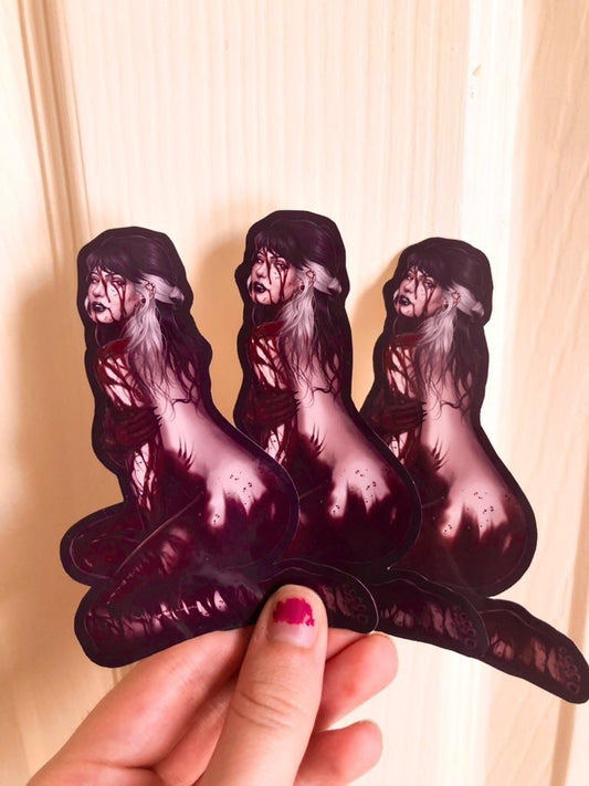 Bloodied Beauty - Gothic Vampire Pinup Sticker (Glossy)