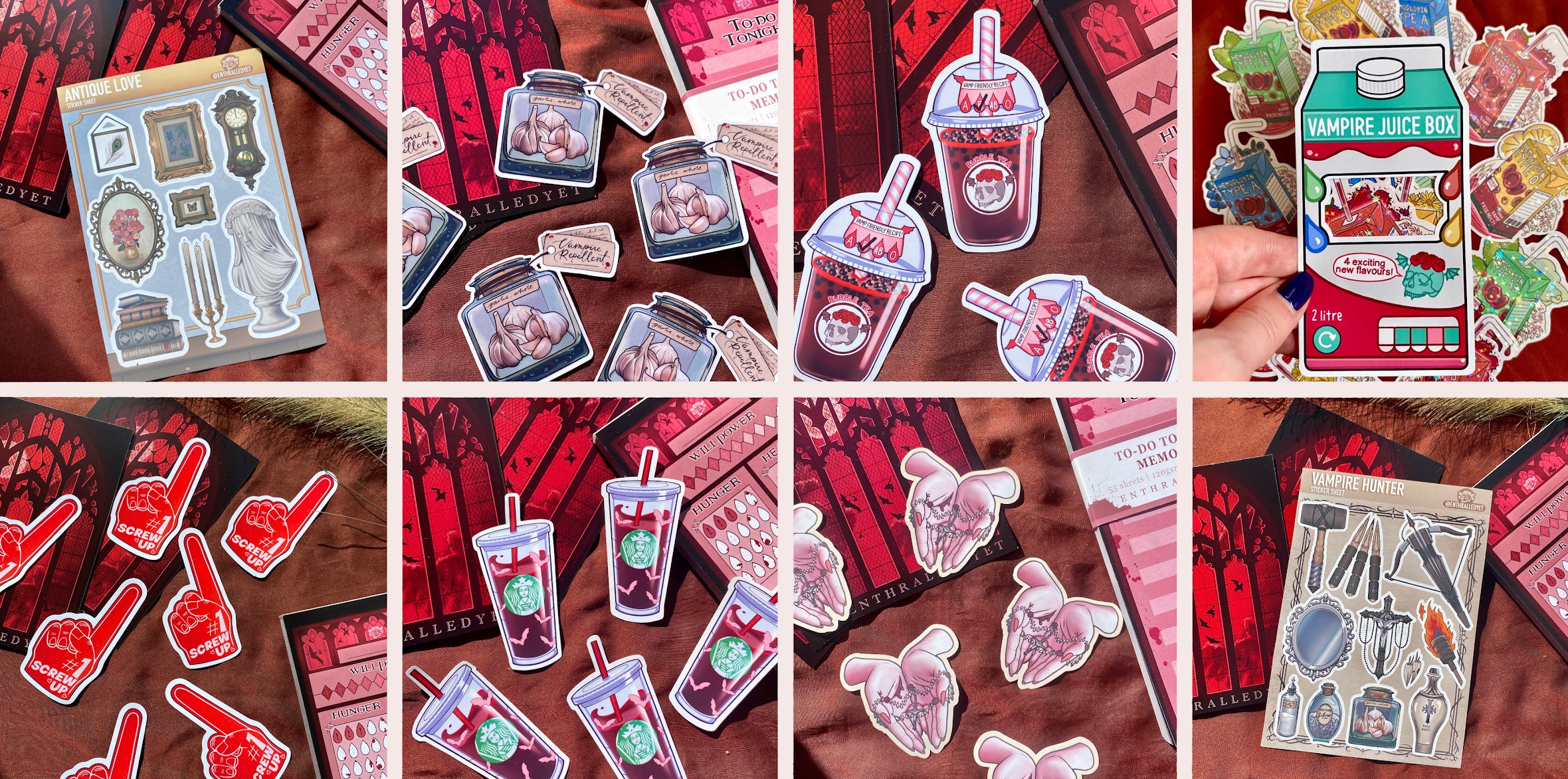 Thanks for stopping by! I'm Verena: a freelance illustrator and graphic designer. Browse my portfolio and commissions, or explore my online store where I share my love of gothic stickers and stationery with the world.