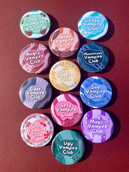 Vampire Club - Gothic Button Pin Badges (12 Designs Available)