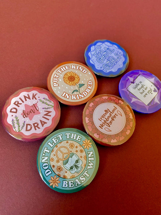 Undead Affirmations Button Pin Badges - Gothic Accessories | Vampire Pins
