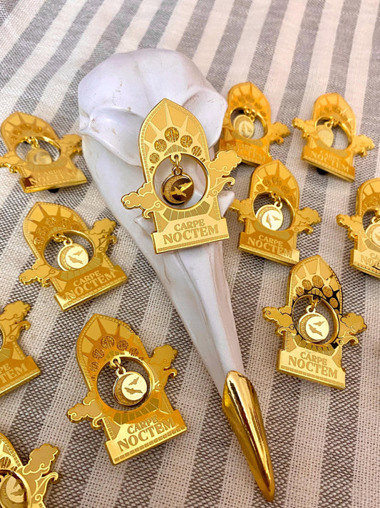 Carpe Noctem - Large Glitter Enamel Pin, Gothic Witchy Badge