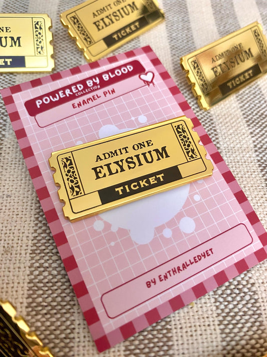Elysium Ticket - Gold Metal Enamel Pin, Gothic Vampire Badge