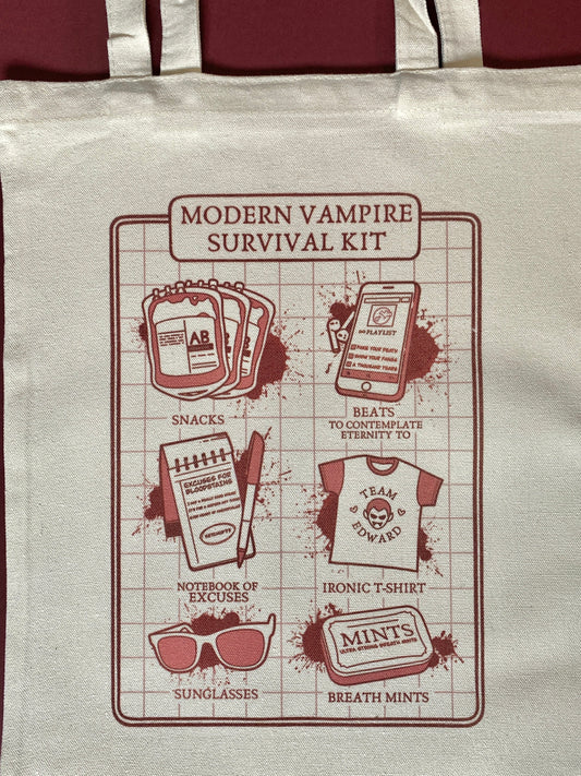 Modern Vampire Survival Guide - Reusable Gothic Tote Bag, Shopping Bag, Vampire Graphic Bag