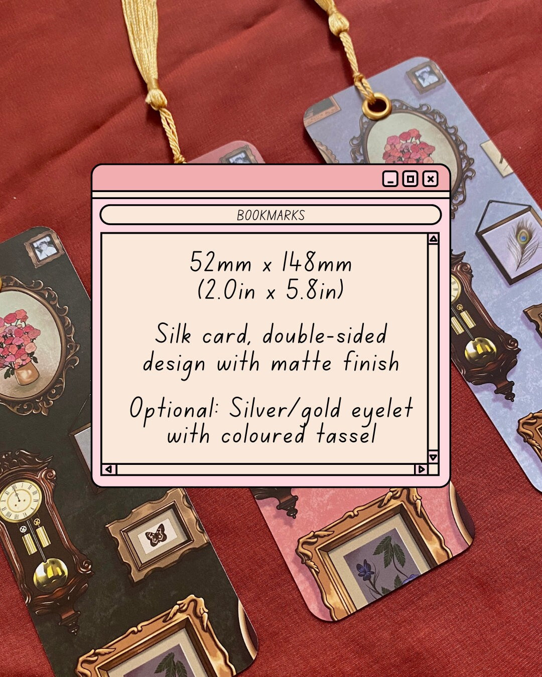 ~ This bookmark is made of sturdy satin card and decorated with a gold tassle.