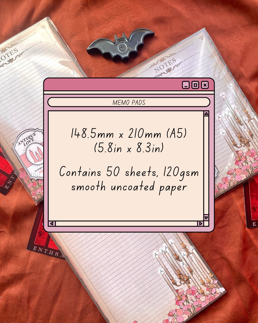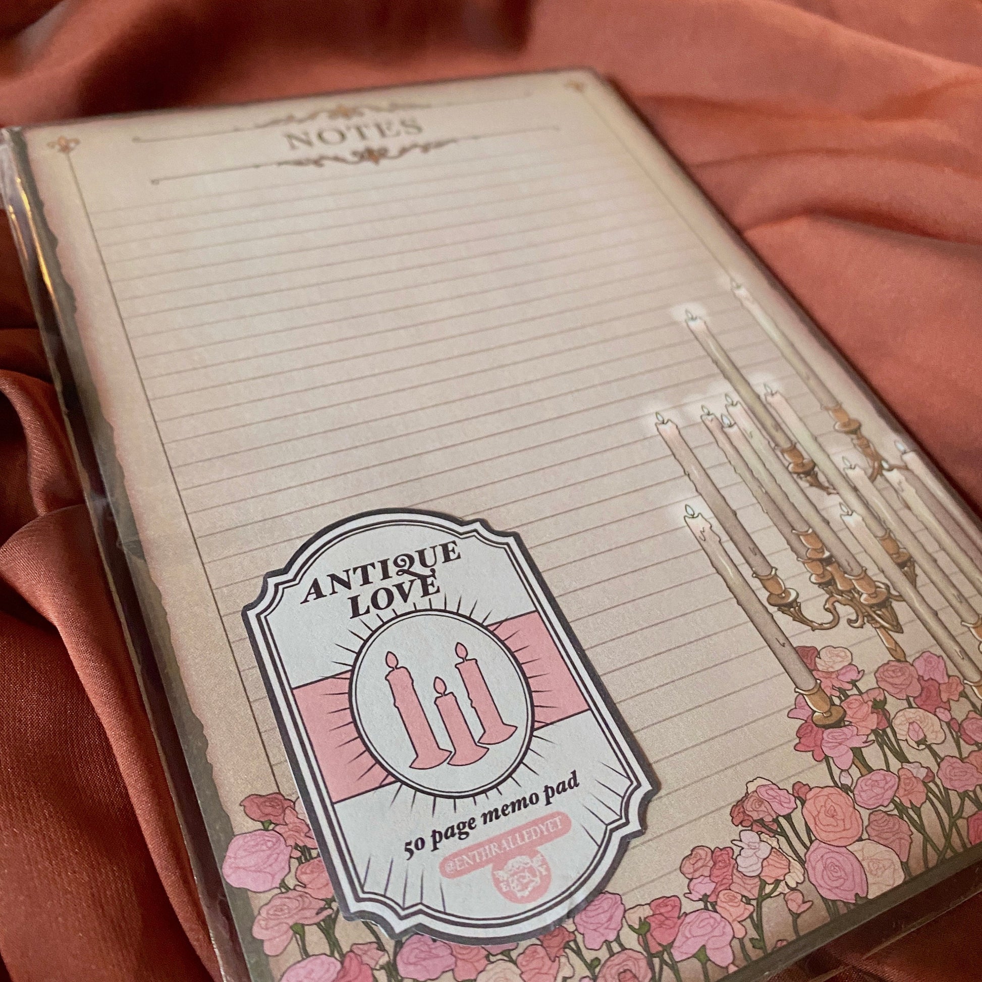 Antique Love Notepad - Vintage Dark Academia Romantic Floral Memo Pad