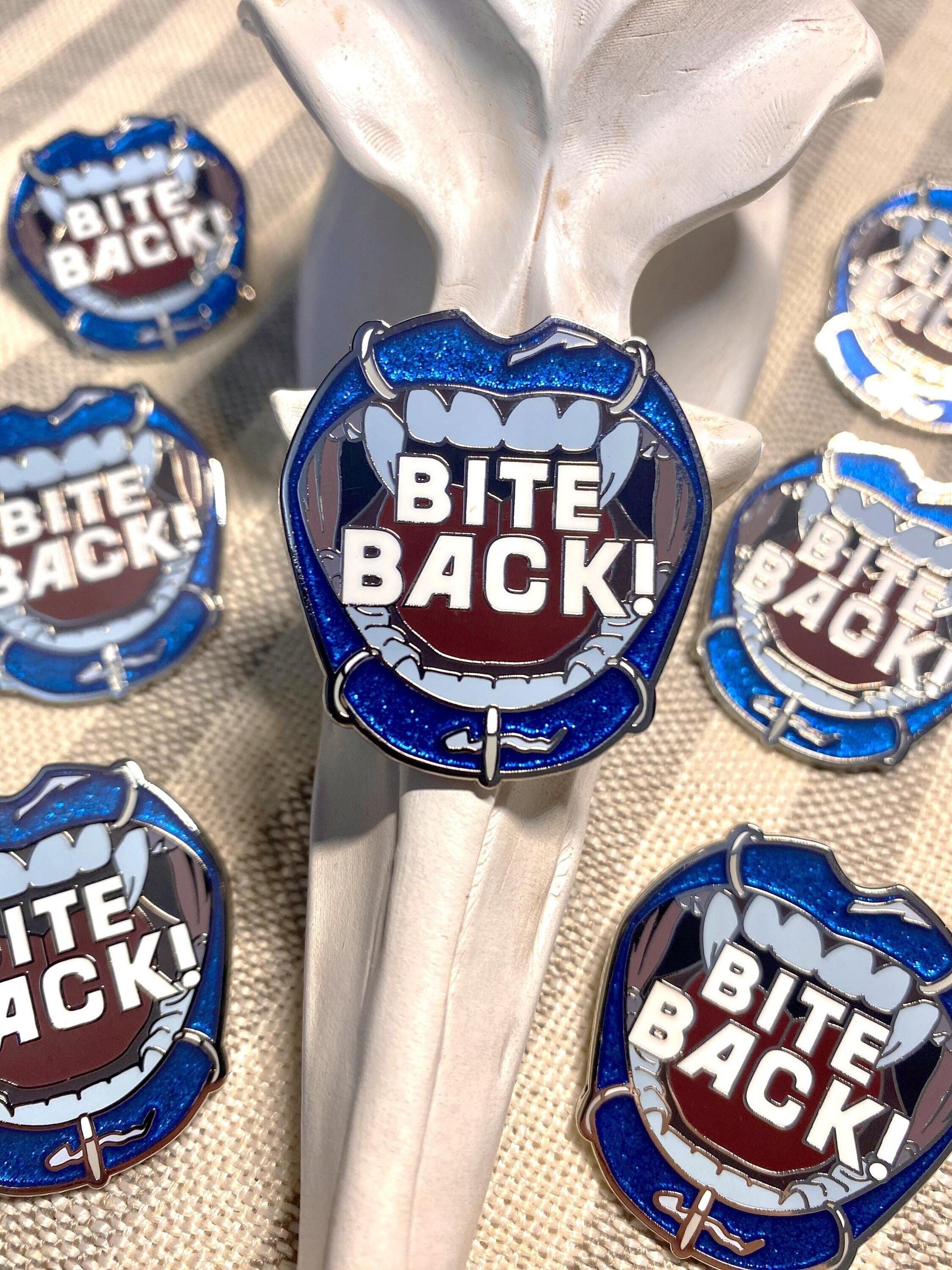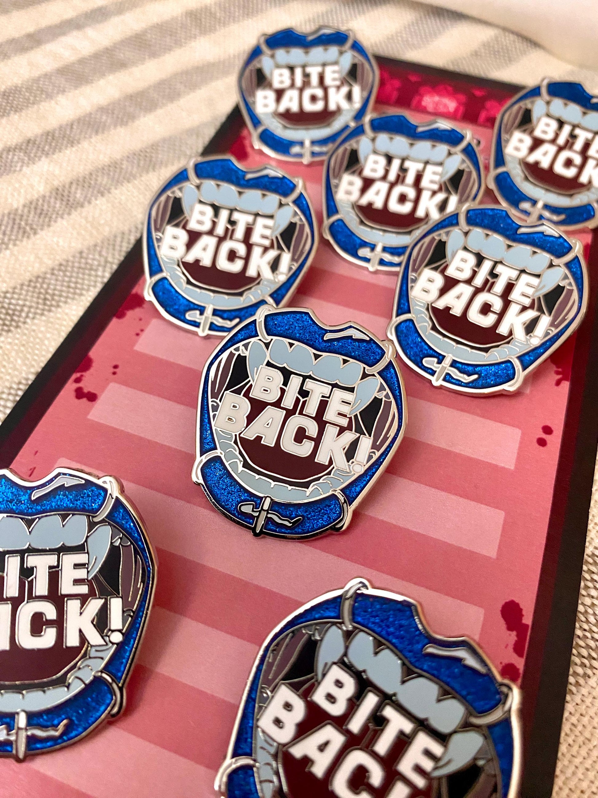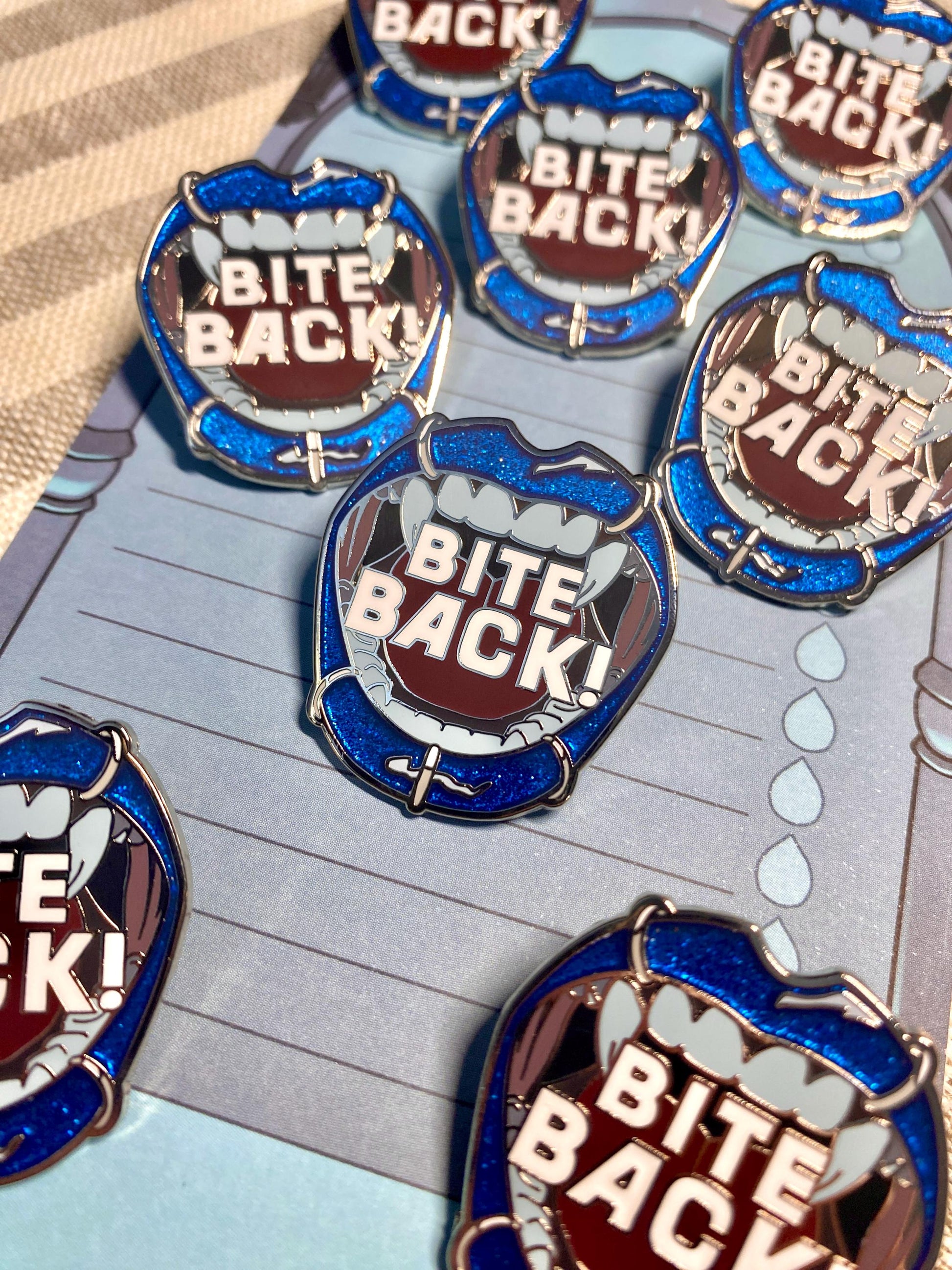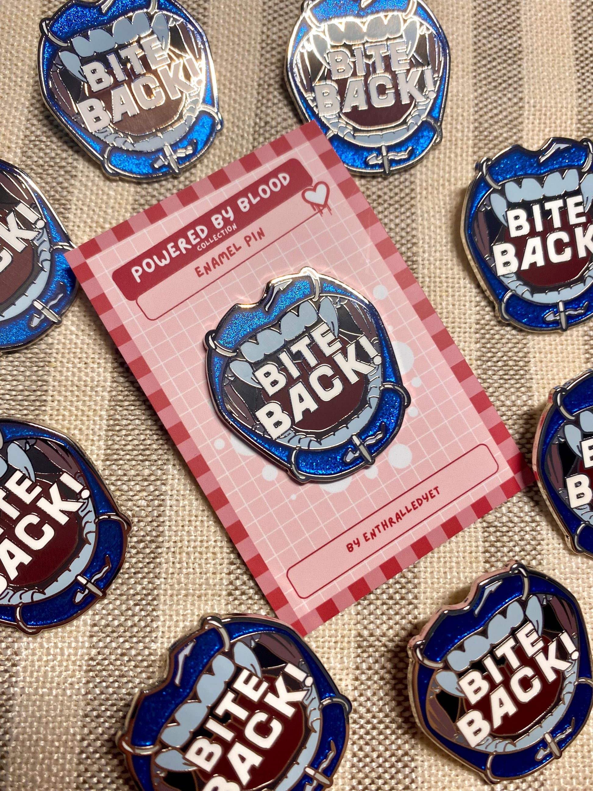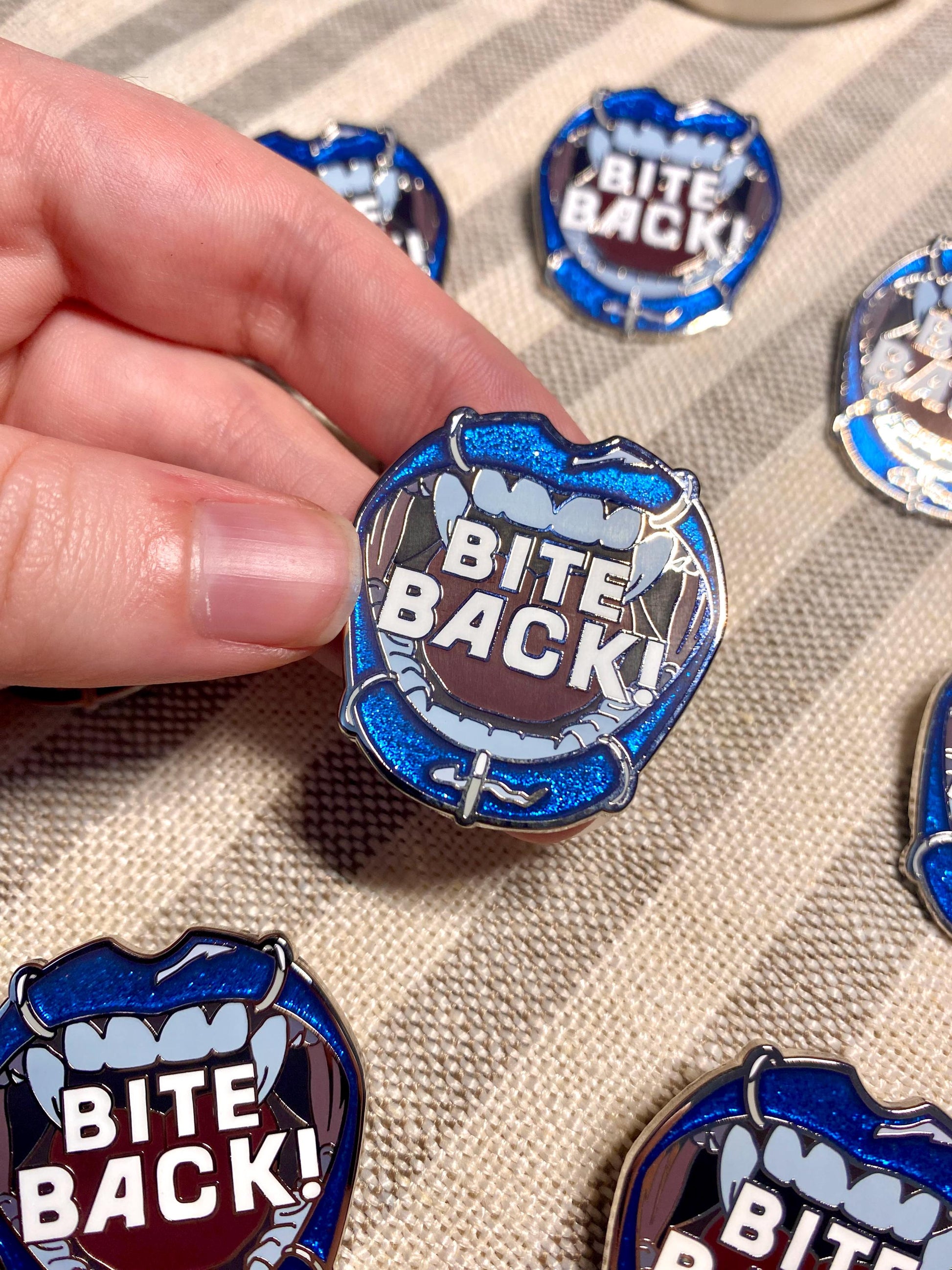 Bite Back! - Glitter Enamel Pin, Gothic Vampire Badge