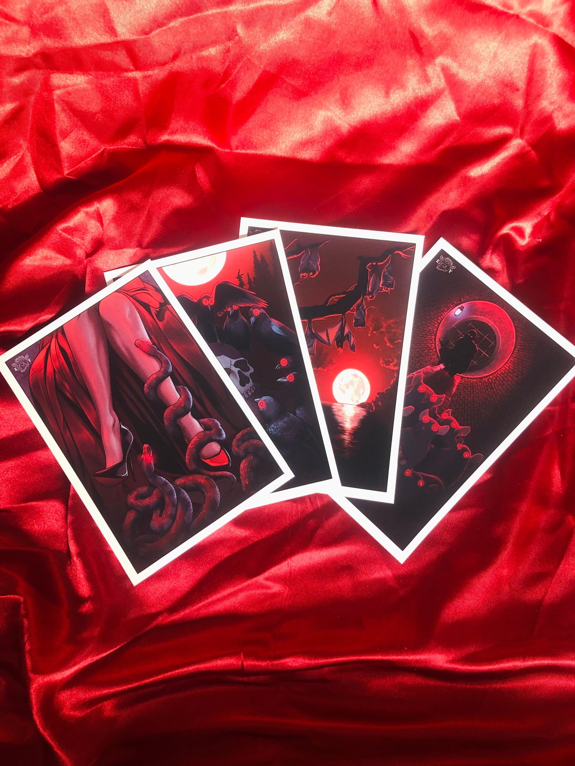 This gothic print collection is inspired by my love of vampires, and ghouled creatures! This pack contains 4 A6 postcard prints: The Den, The Mischief, The Murder, and The Swarm. This would make a great gift idea for any fan of the gothic, vampires, or the supernatural!