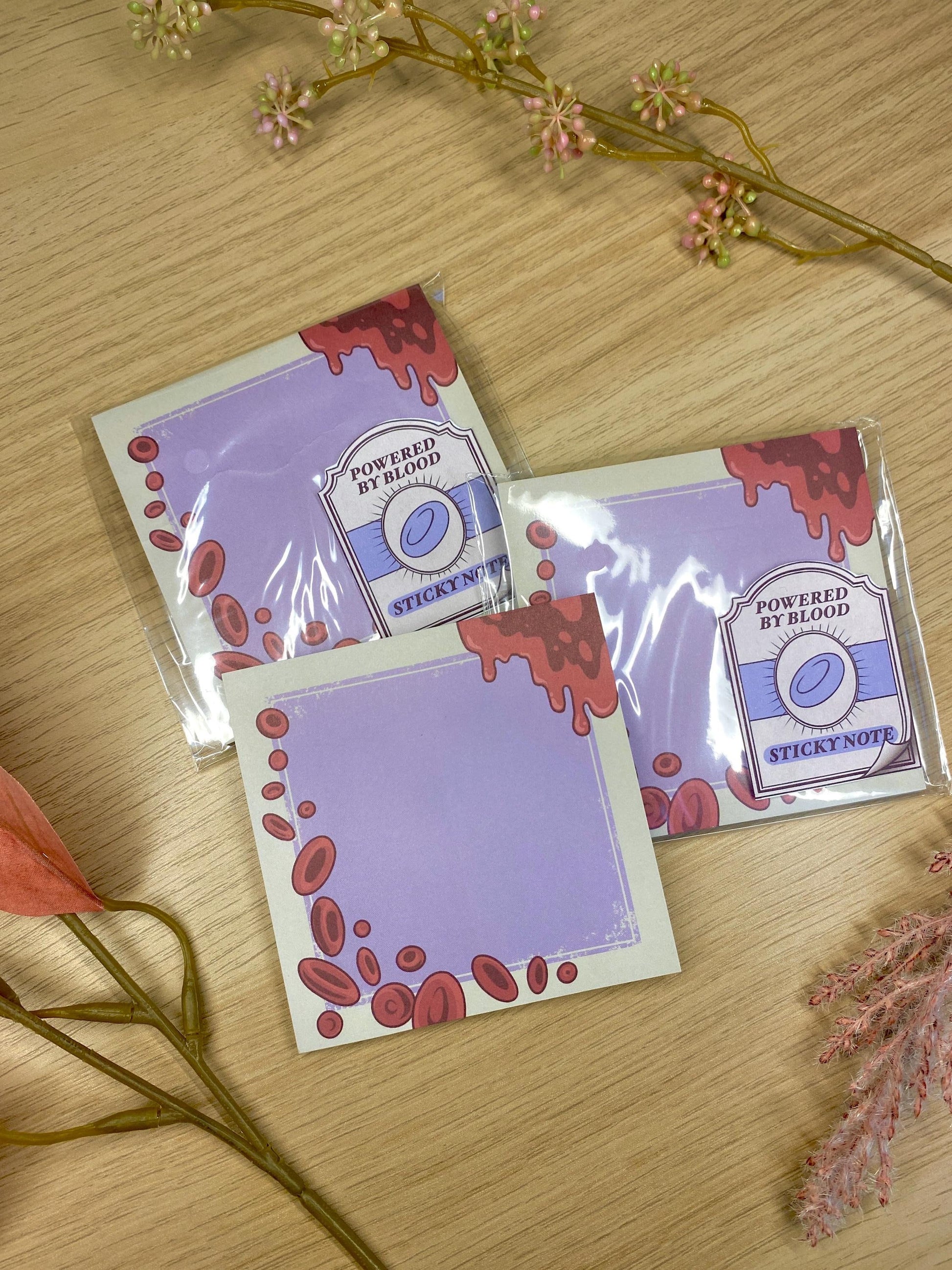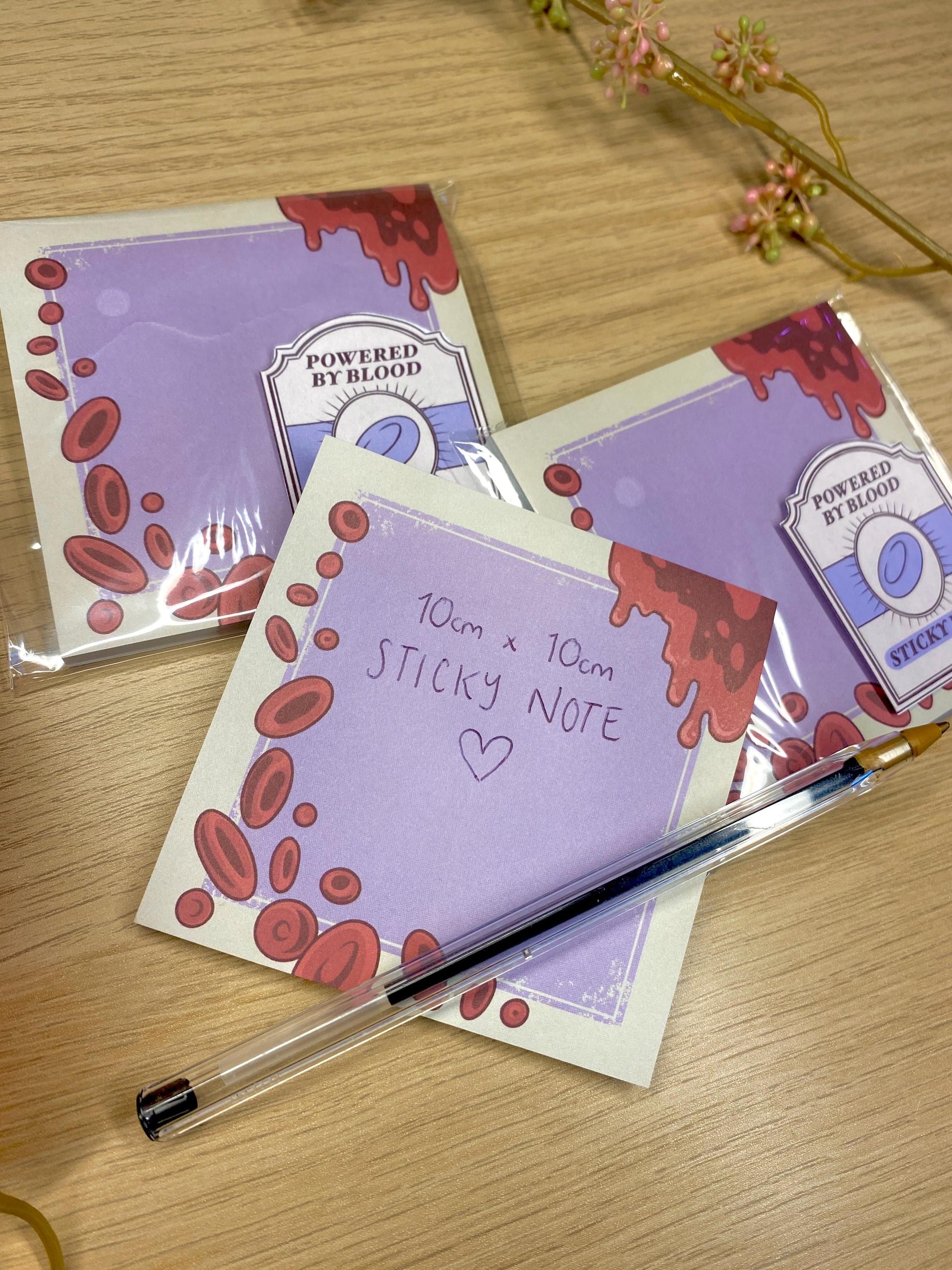Blood Sticky Note - Powered By Blood, Gothic Vampire Stationary