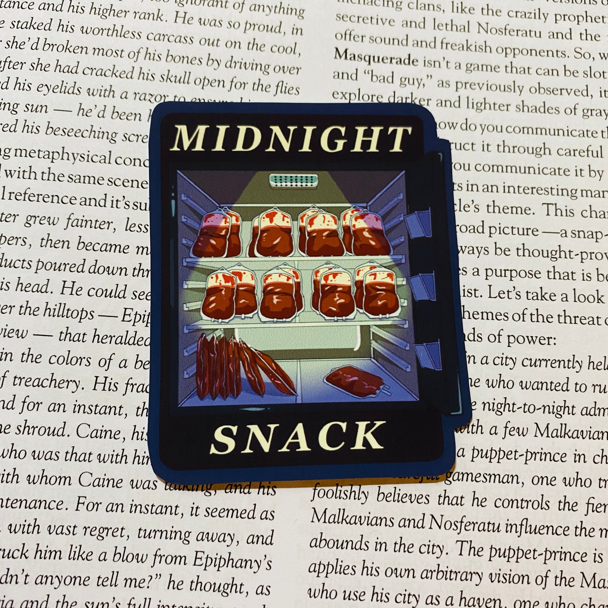 When it's just before dawn and you find yourself craving some sweet O-negative, look no further than your fridge for the perfect Midnight Snack. Show off your bagger unlifestyle with this funny gothic sticker! #YouOnlyLiveForever.