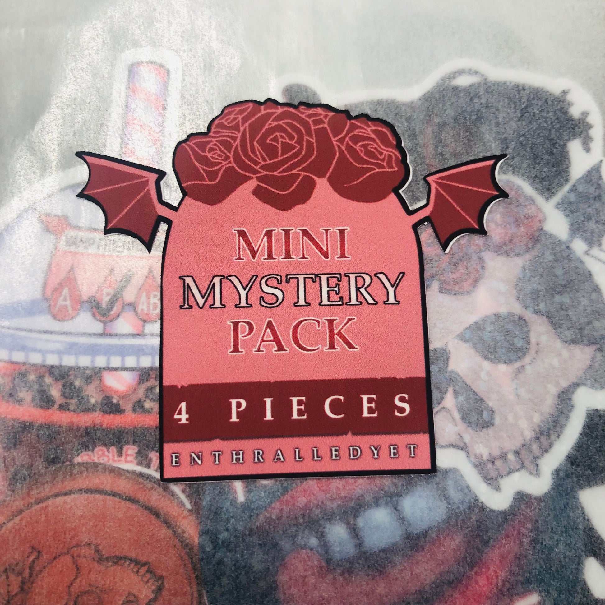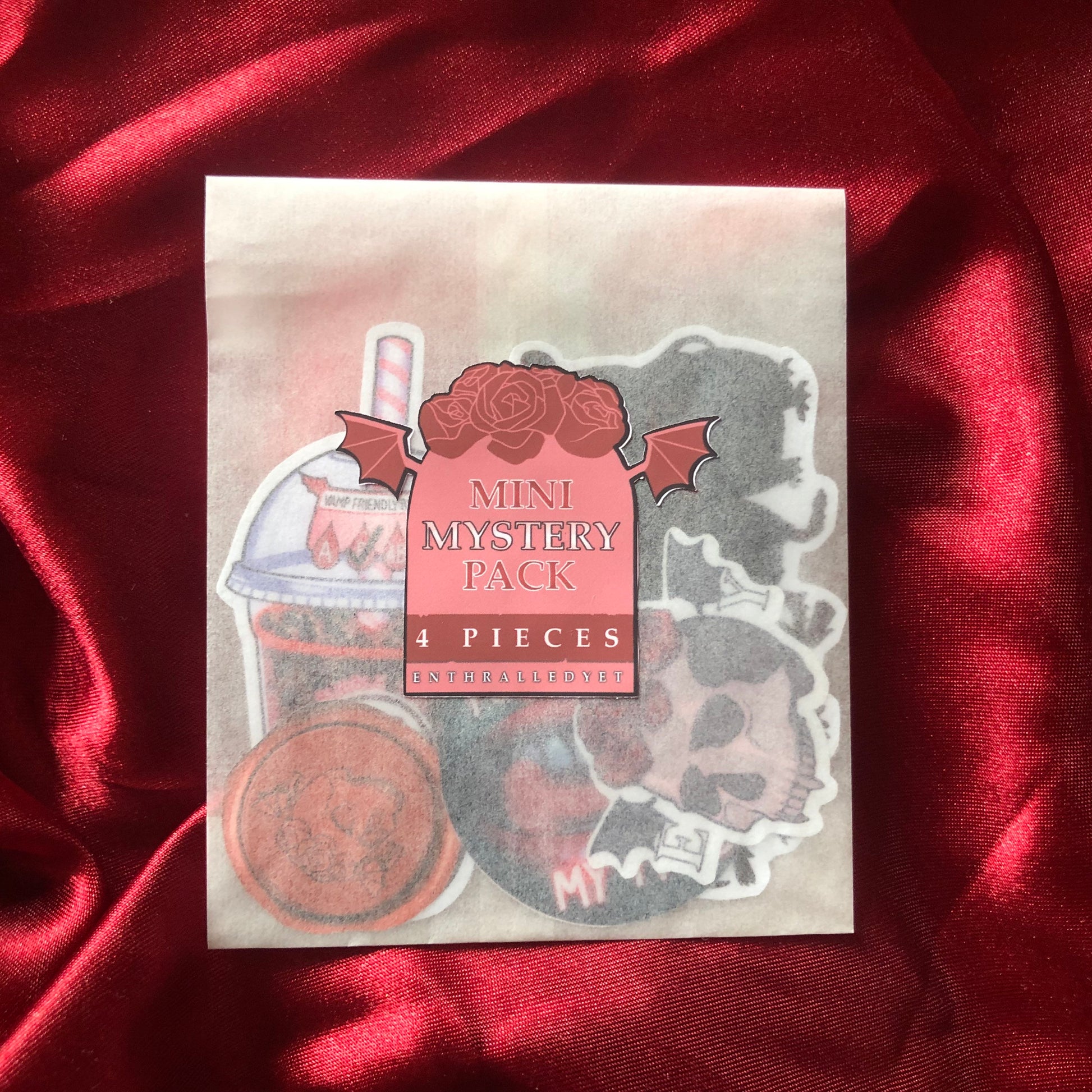 A mystery selection of vampire inspired stickers (currently ranging from the Problem Childe and Modern Vampire Packs, with a few independent designs) in a smaller size - perfect for notebooks, laptops and phone cases!