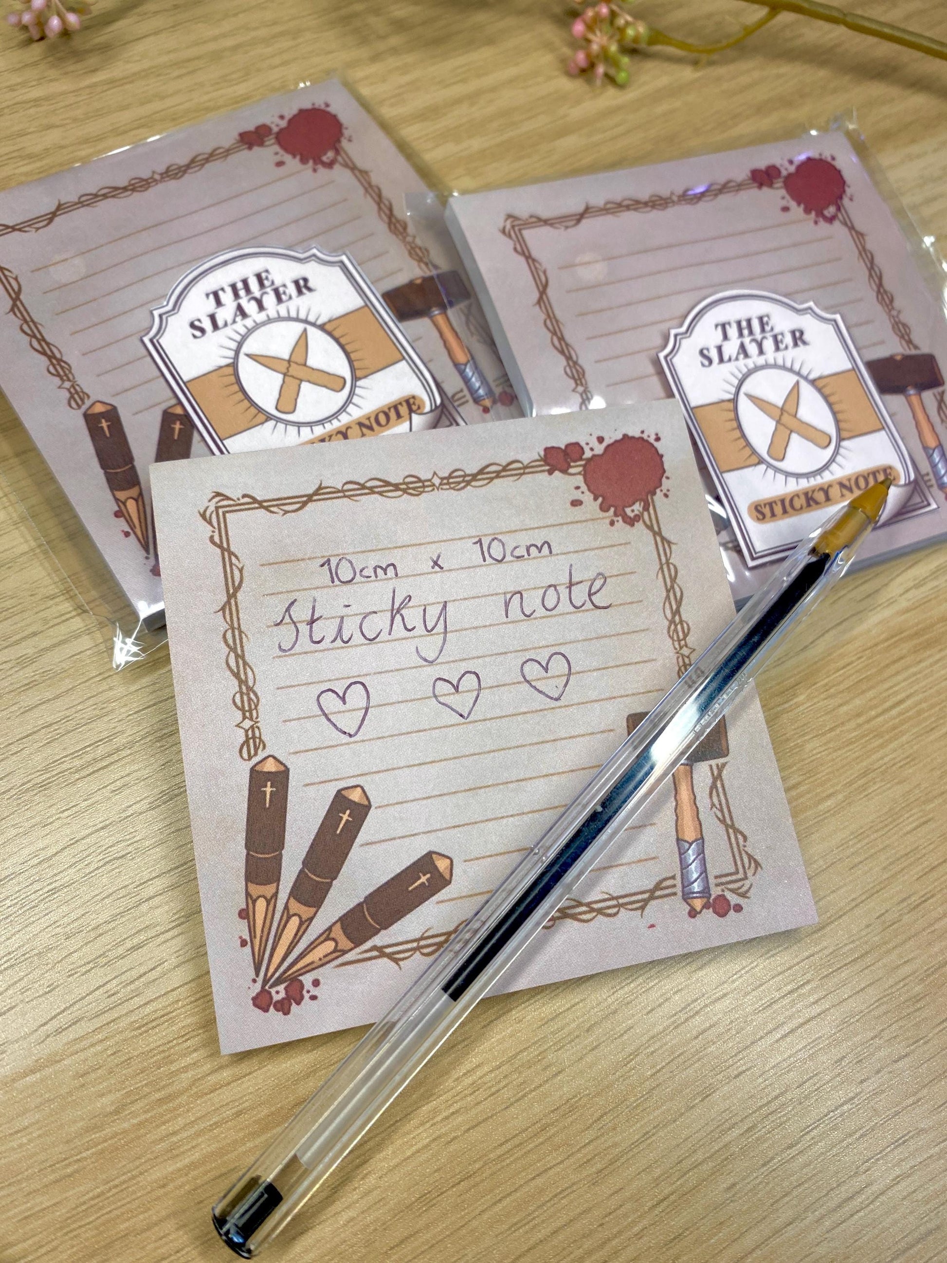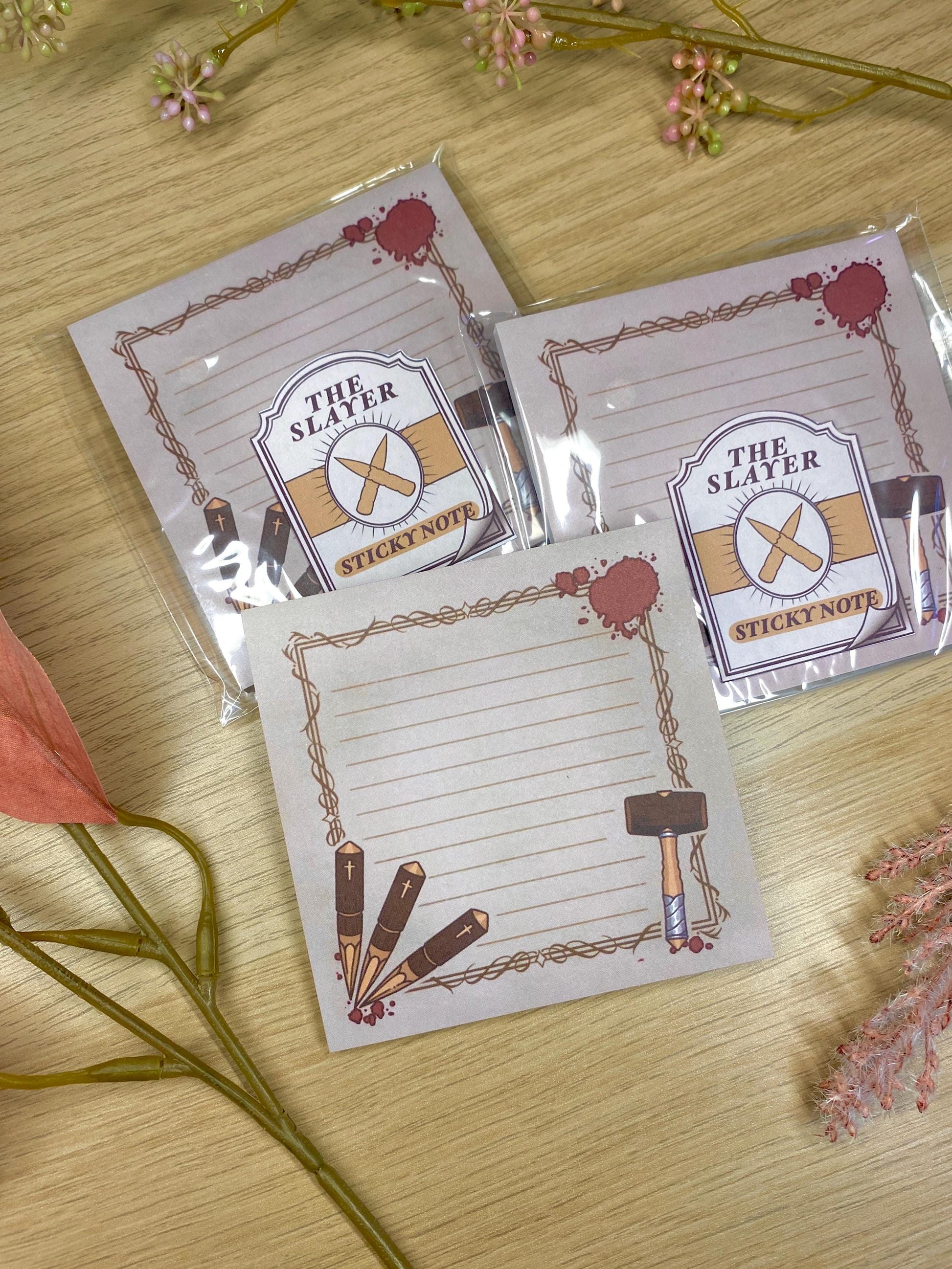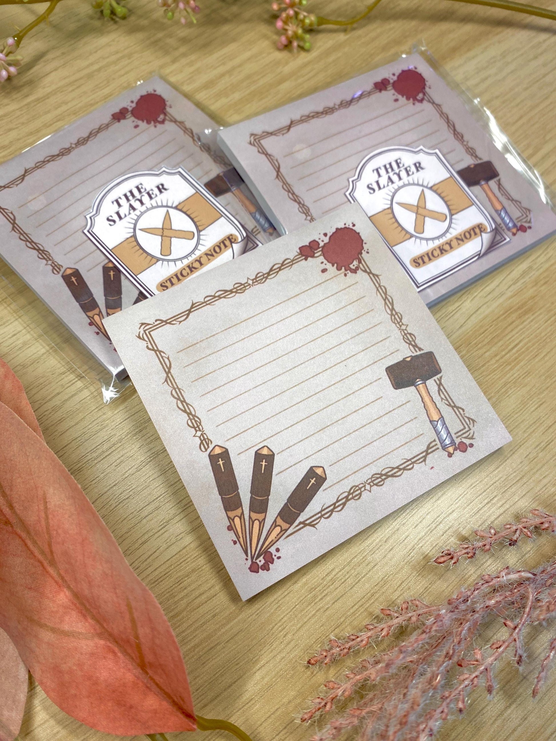 In hunting creatures of the night, your tools of the trade are essential. Stakes, powdered silver, crossbows and scythes… you can never over-prepare. This Monster hunter sticky note is perfect for planning on the go!