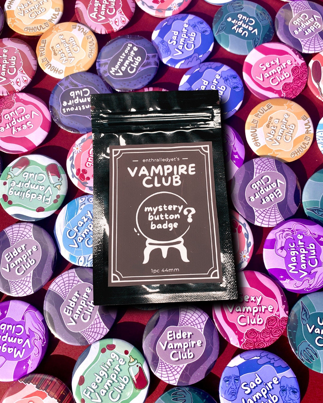 Mystery Vampire Club Badge - Gothic Button Pin Badges (12 Designs Available)