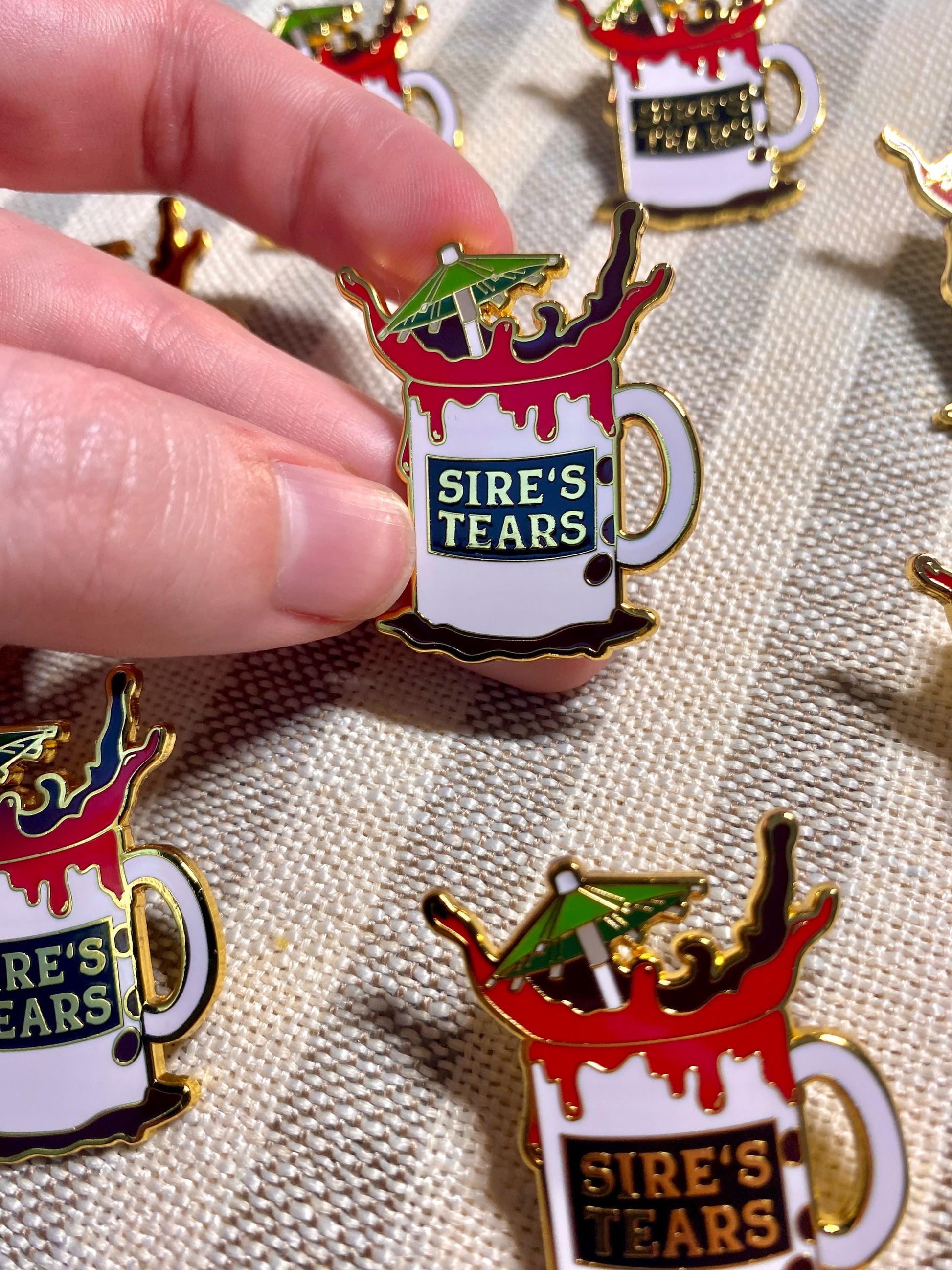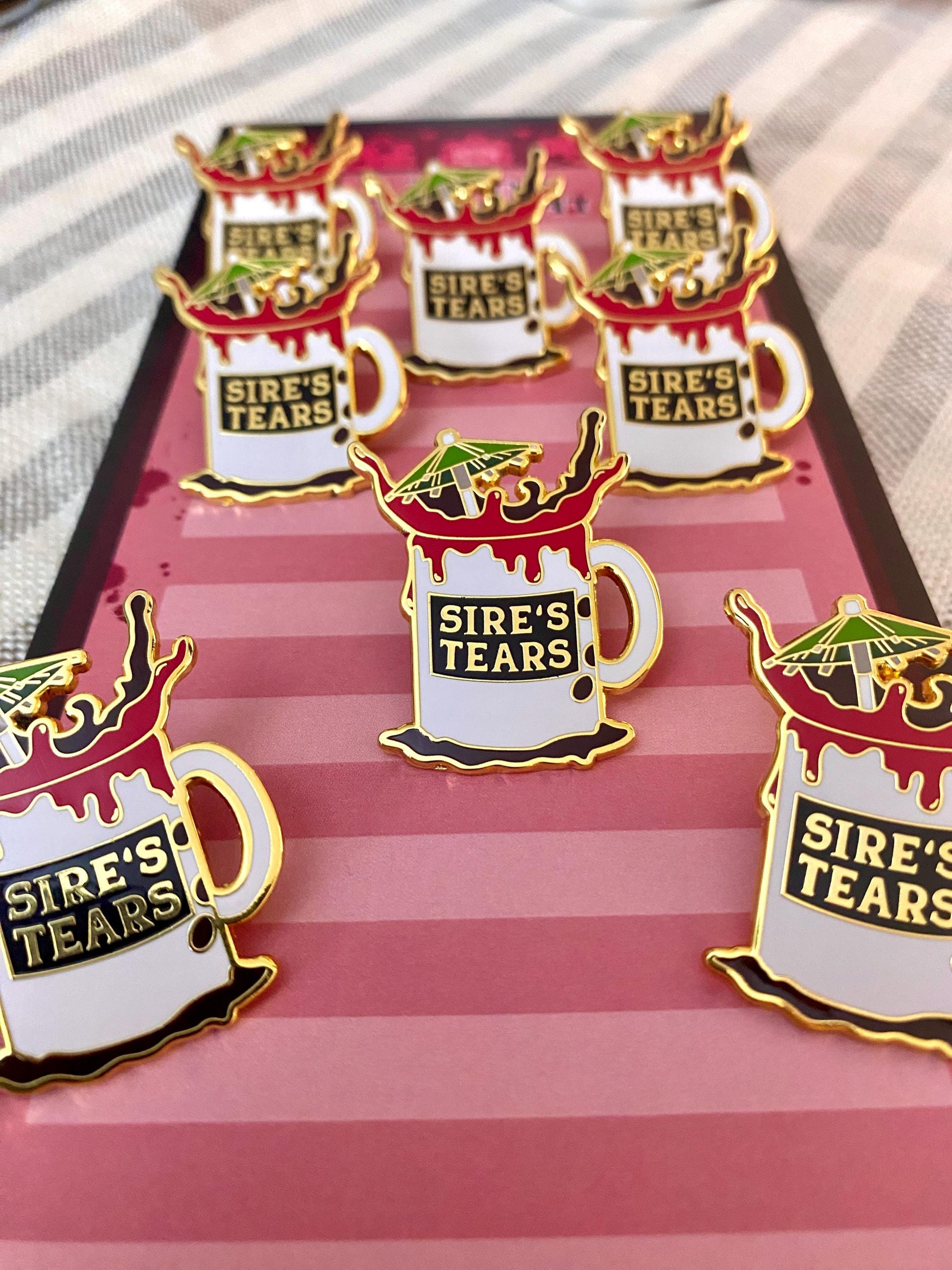 There's no experience more fulfilling than a cup of your Sire's tears. Disappoint! Disobey! And most of all, stay hydrated while you're doing it with this gold metal enamel pin!