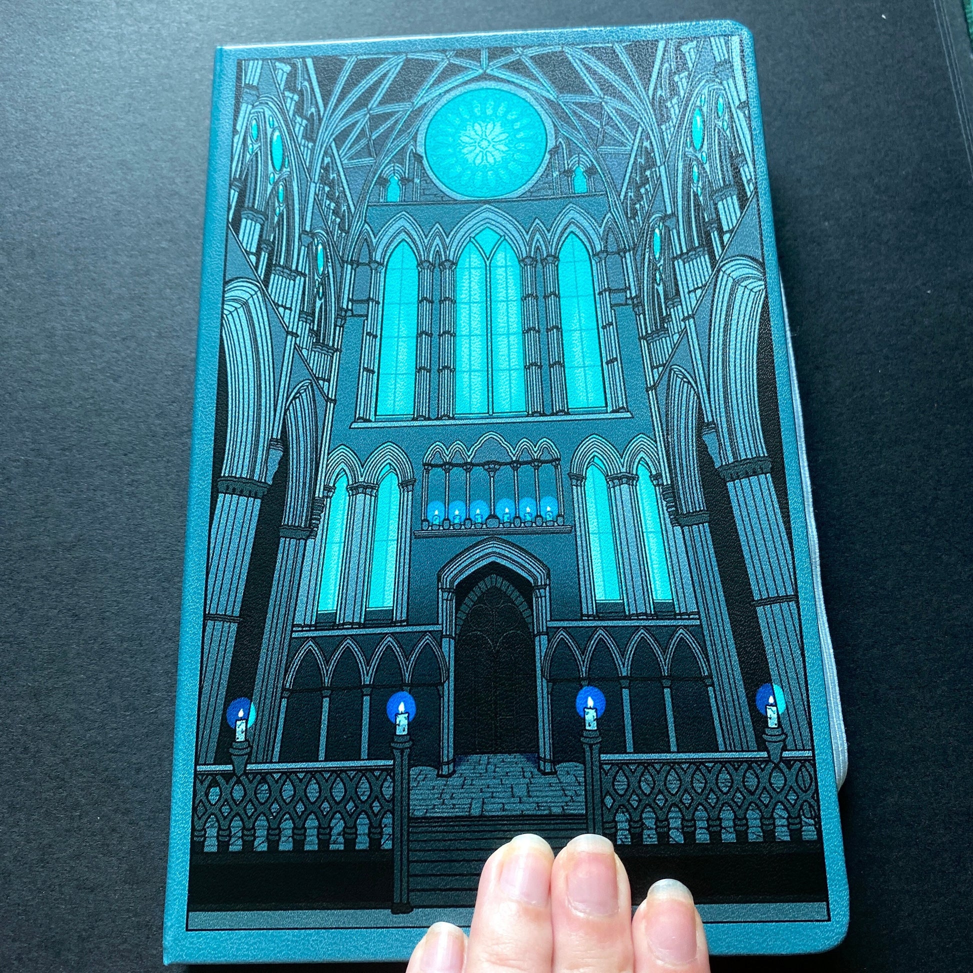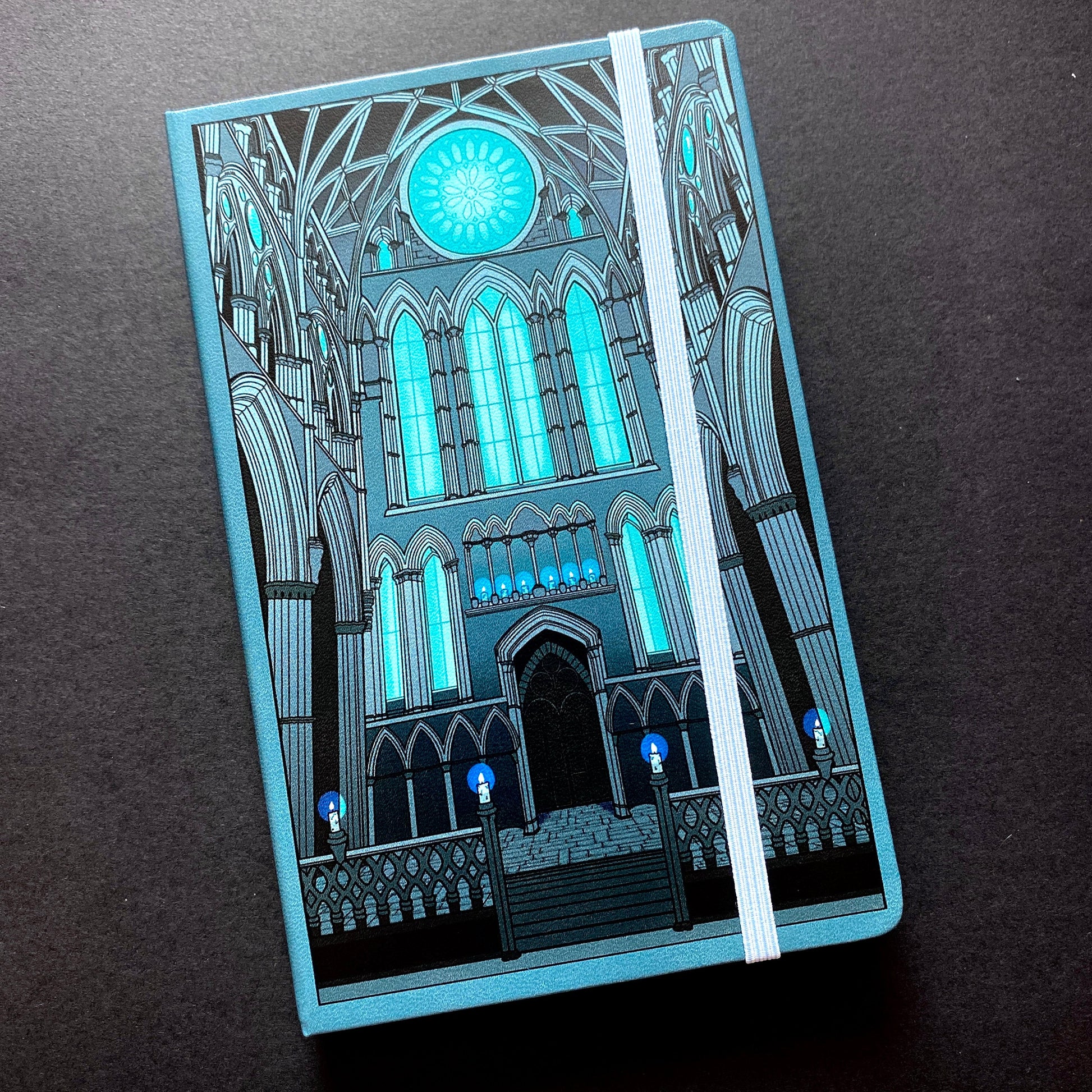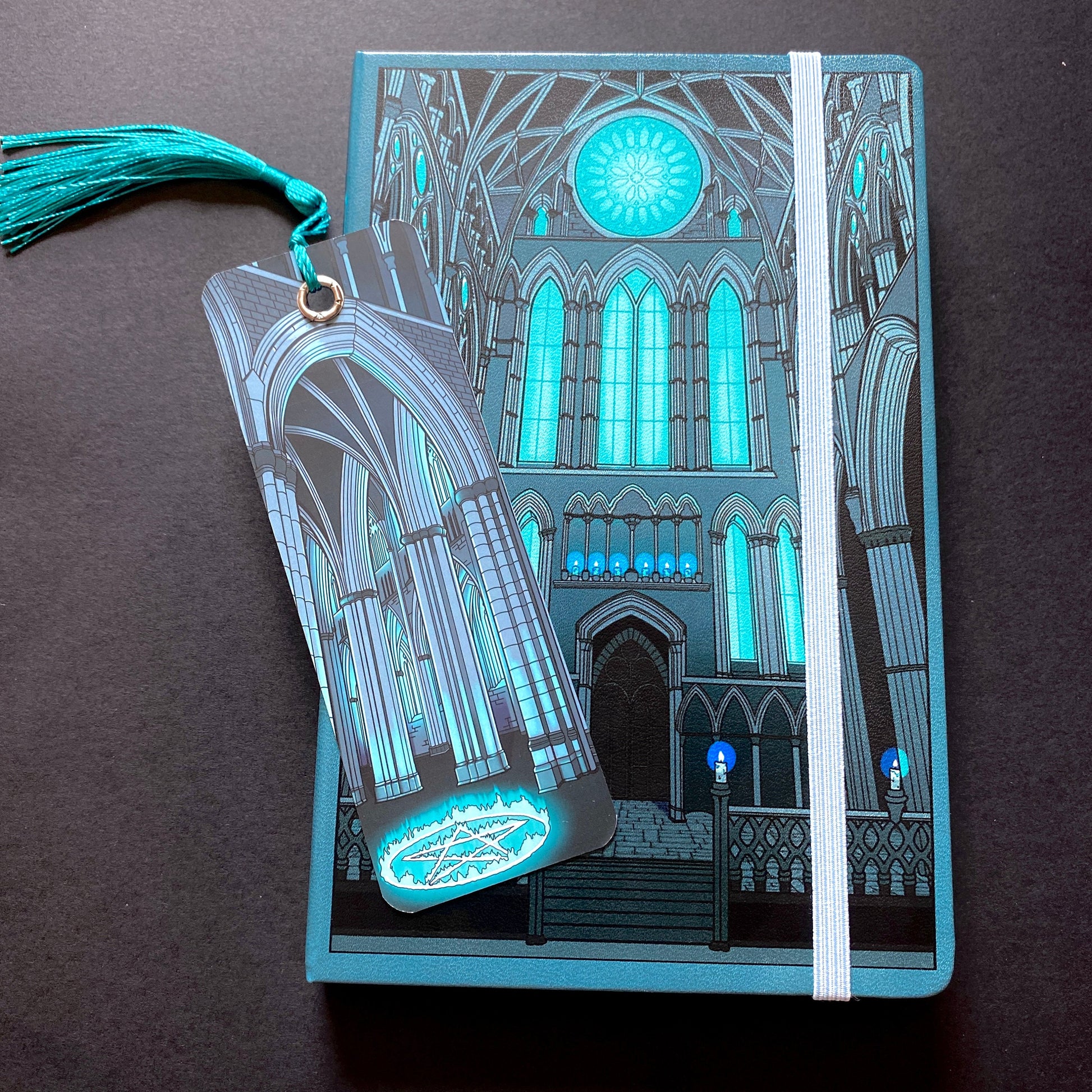 This arcane inspired, witchy gothic notebook completes the ‘Sanctum’ collection. It is vegan friendly (leatherette), and contains 200 dotted pages to write your notes or sketch on, and comes with a light blue tassel and elastic band to keep your secrets safe.