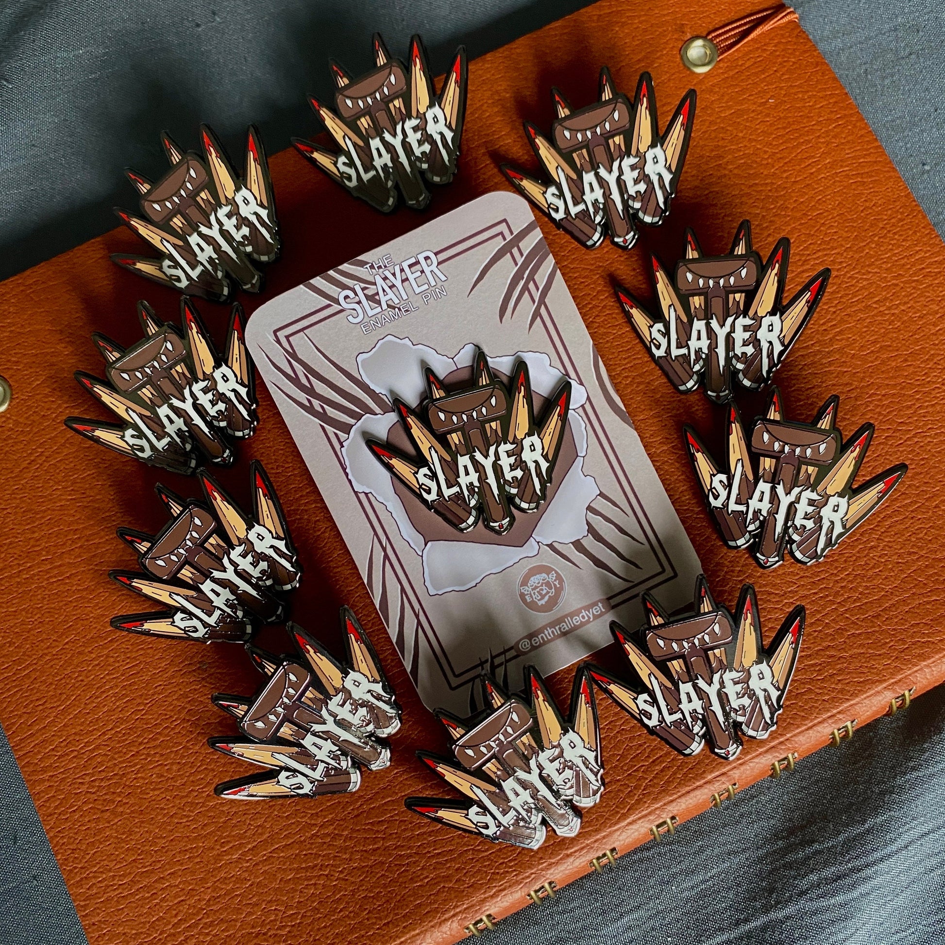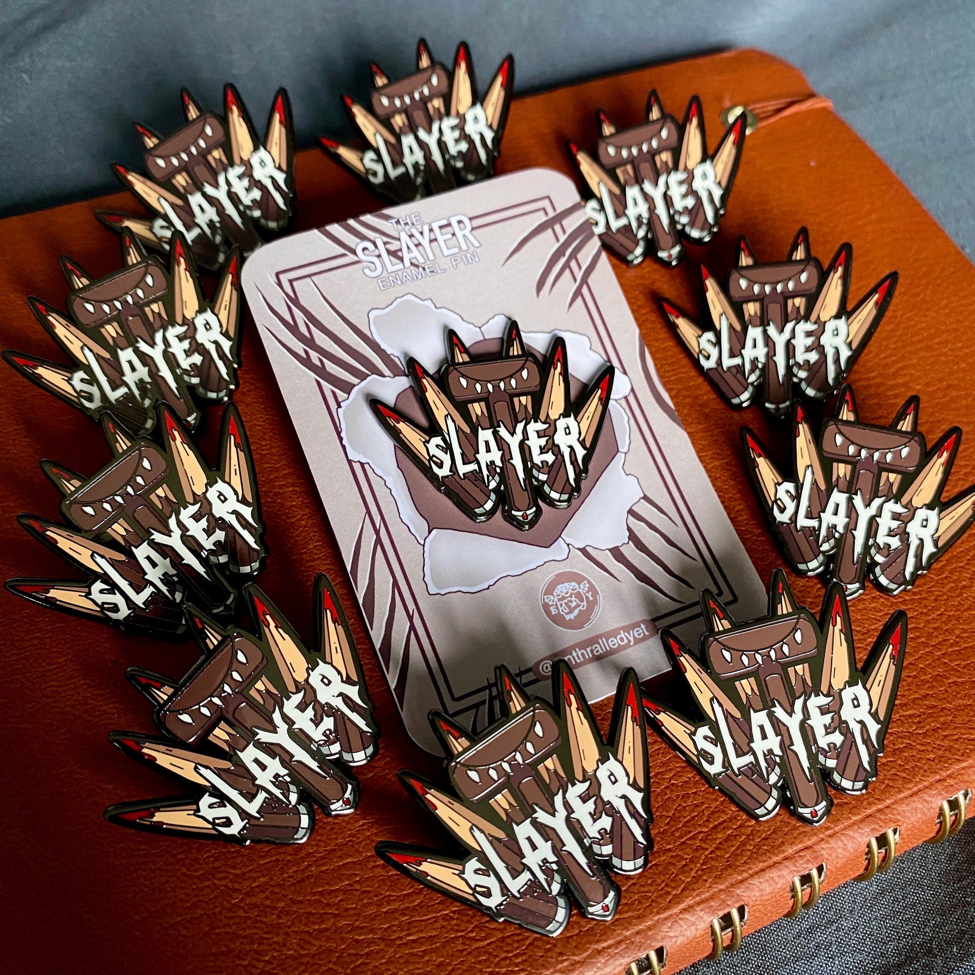 ~ The packaging for the Slayer pin contains a plastic bag that is fully compostable. Please recycle the packaging if you can!